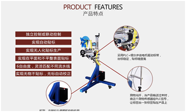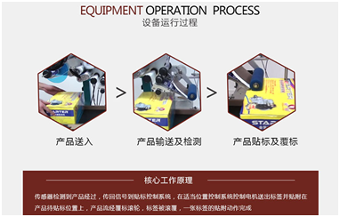流水线贴标头的核心工作原理是传感器检测到产品经过,传回信号到贴标控制系统,在适当位置控制系统控制电机送出标签并贴附在 产品待贴标位置上,产品流经覆标滚轮,标签被滚覆,一张标签的贴附动作完成;流水线贴标头的操作过程简单方便:产品送入(接流水线)—>产品输送—>产品检测(或接收外源信号)—>贴标—>覆标。