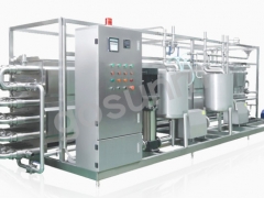 管式超高温灭菌机属于杀菌设备,广泛用于液态食品“无菌”和“非无菌”热处理的全自动系统,产品的粘度范围很大,并能适应纤维和颗粒。本公司的UHT灭菌机系列生产能力可以从1~30t/h,典型的灭菌温度为90~140℃,能连接任何灌装机(无菌的或其他类型的),灭菌机和控制系统安装在底架上,控制元件均采用国际名牌产品,包括PLC程控器及工控屏、蒸汽减压及调节阀、分流阀、稳压阀、物料泵、热水泵。其他阀及管接件等所有液体配件都选用高质量和高可靠的。