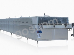 其为隧道式喷淋杀菌冷却机,是一种处理已灌容器的方法,经过处理好的产品灌进容器,并将容器封好盖,然后通过输送带的传送,进入温瓶机的内部。