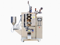 该机是针对粘稠体、膏体等物料实现自动包装而设计的三对辊筒立式包装机,可以实现三边封口或四边封口的包装。