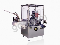 该机型适用多种规格(亦可装瓶亦可装铝塑版)物品的自动加料及装盒。自动上料机构调节方便、可在操作屏上任意设定需装盒的版数。在线物料输送、说明书折叠(1-4次折置)与传送、说明书检测、纸盒吸取成形与与传送、物料入盒、压印批号、纸盒两端纸舌封装(也可适用热熔胶)、缺料剔除及成品输出等全过程均属自动完成。
